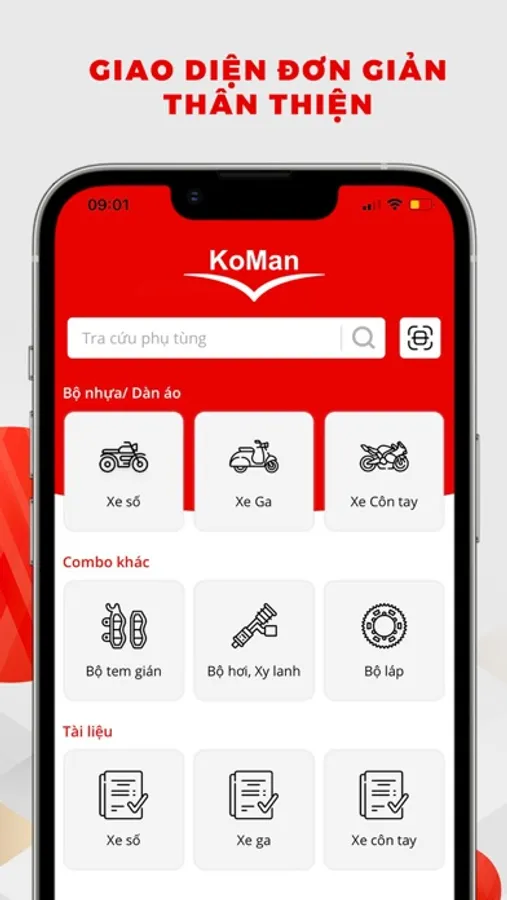 PTXM KoMan ứng dụng tra cứu, đặt hàng phụ tùng xe máy honda, hoạt động trên tất cả hệ thống mạng internet như wifi, 2G/3G/4G,...
