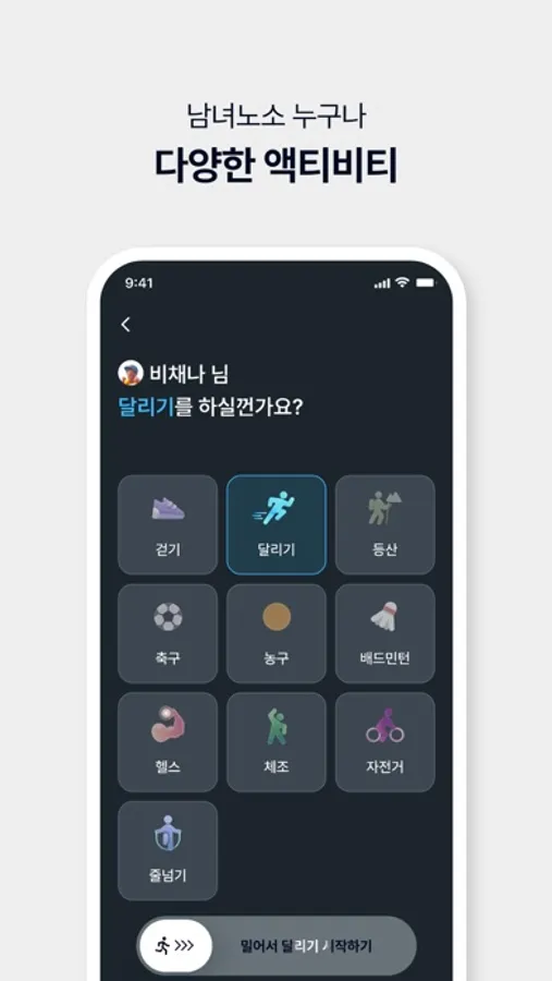 조깅이면 조깅 앱, 런닝이면 런닝 앱, 헬스면 헬스 앱... 이젠 비채나 앱 하나로 모든 운동을 시작해보세요.