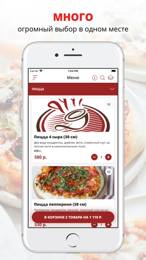 Удобное приложение для заказа еды домой или в офис. Всегда в нашем меню - пицца, салаты, супы, горячие блюда, десерты.