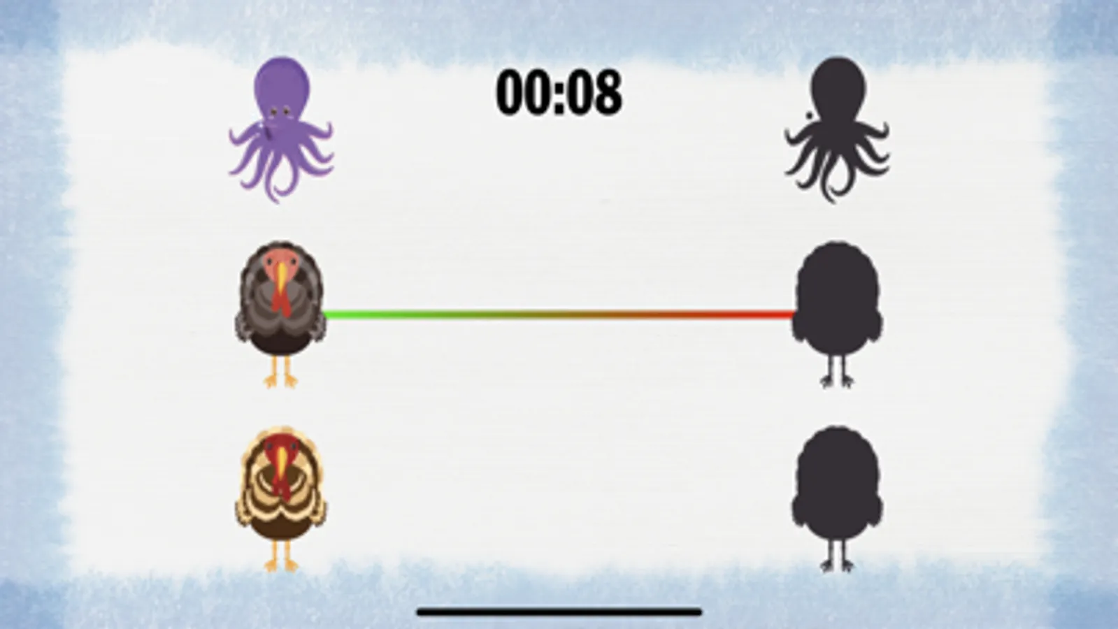 Match the animals with their shadows.