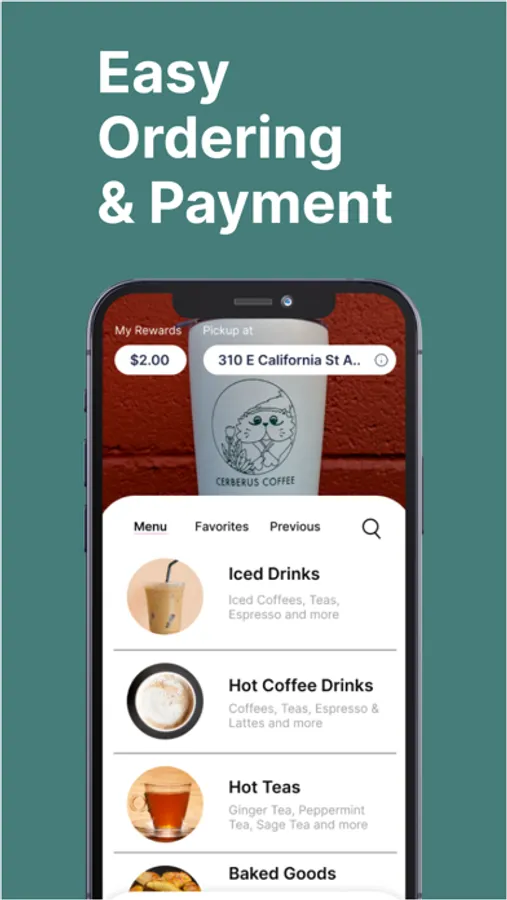 The Cerberus Coffee app allows customers to easily order ahead and receive great rewards.