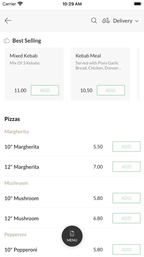 We serve a variety of food such as pizzas, burgers, wraps, kebabs and more. You can find our whole menu on our app, filled with mouth-watering dishes and catering for all kinds of different tastes!