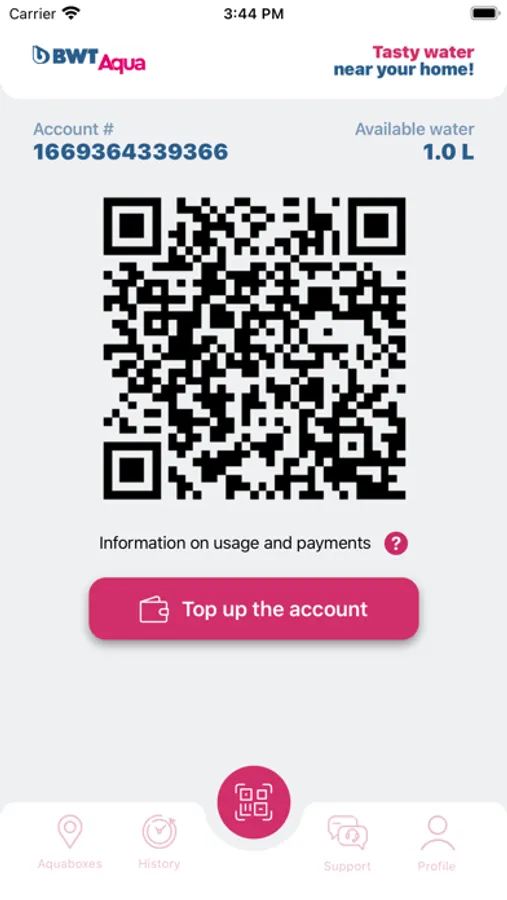 • History of account top-ups and water purchases is available in the app - you can monitor your water consumption