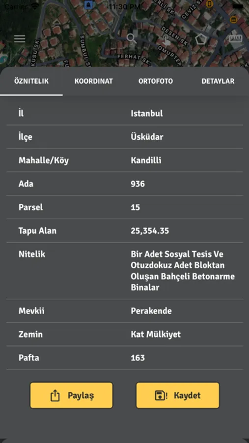 "Haritalar üzerinde parsel/pafta bilgilerini keşfetme, arazi alanlarının metrekarelerini ölçme, mesafe ölçümü yapma ve parsel bilgilerini kaydetme gereksiniminiz varsa, doğru uygulamayı keşfettiniz! Mobil uygulamamız kullanımı kolay ve kullanıcı dostu arayüzü ile harita üzerinde parsel/pafta bilgilerine rahatça erişmenize, arazi alanlarının metrekarelerini ölçmenize, mesafe ölçümü yapmanıza ve parsel bilgilerini kolayca kaydetmenize ve paylaşmanıza olanak tanır. İndirin ve bugün keşfedin!"