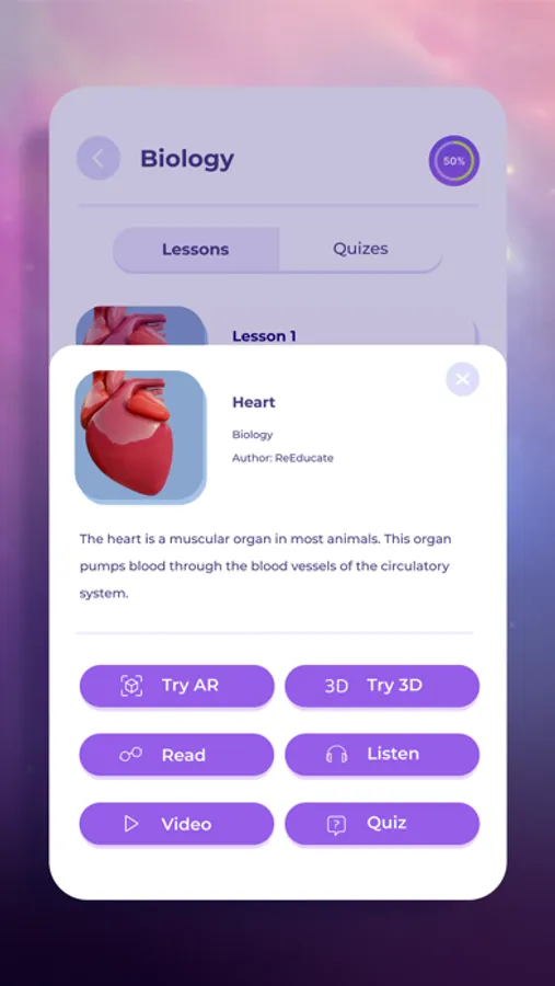 Our app allows doing experiments in virtual labs and makes the study process more interactive and attractive through 2D/3D games, animation, and AR content.