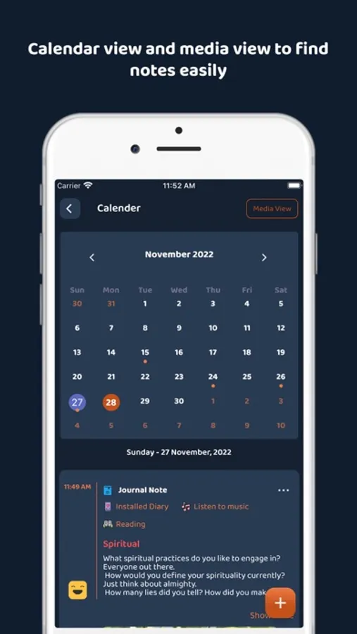 - You can easily see your journal entries date-wise from the calendar view, you can edit or delete them.