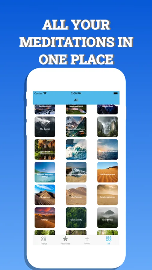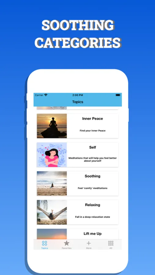 Meditation- Guide to Peace 's topics are designed to be like oasis you enter in your "me" time and have beautiful pictures to guide you even more into achieving your inner peace. here are a few of our topics: