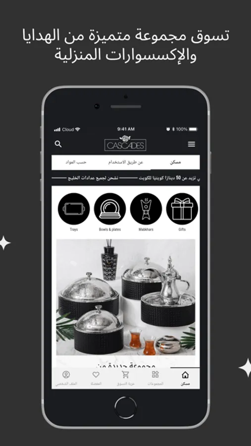 like trays, mabkhars, bowls and plates, heaters and duas, flask, candle holders and more.