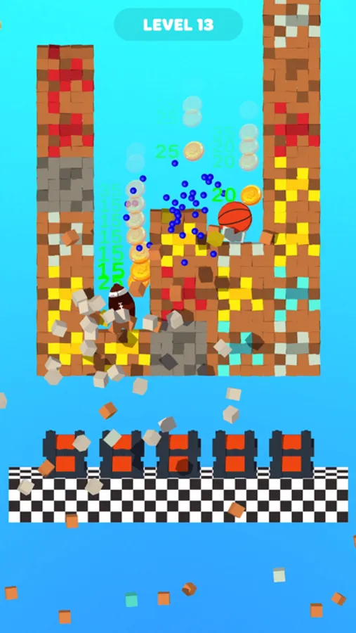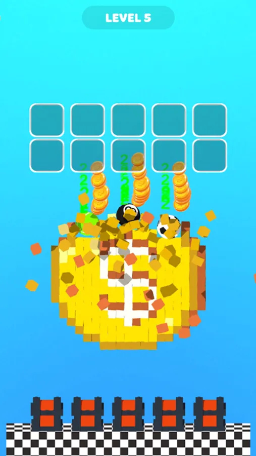 - Drop the balls and make money by smashing the pixels.