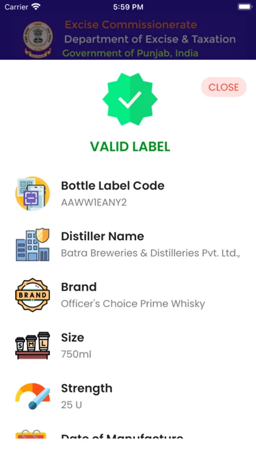 This App scans the 2D Barcodes on the Products approved by the Department of Excise & Taxation, Government of Punjab, India and provides whether it is a valid or an invalid product. If the product is genuine, then this App provides the following information about the product