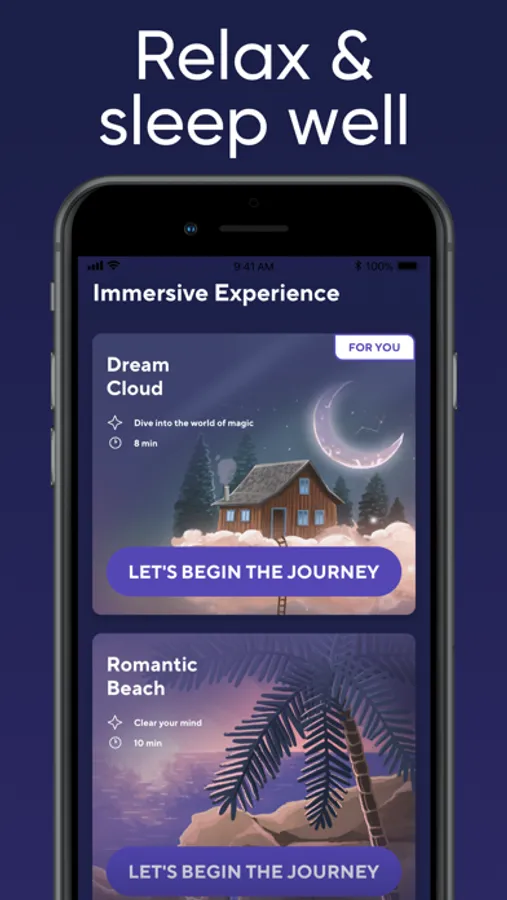Our relaxation and breathing techniques and immersive stories will gently guide you toward your dreams.