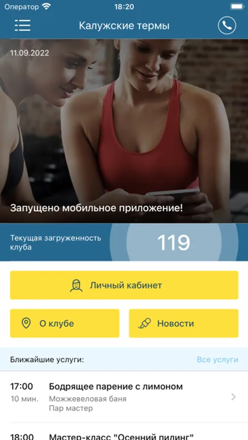 С помощью приложения, вы можете следить за новостями комплекса, массовыми практиками, акциями, тарифами и скидками