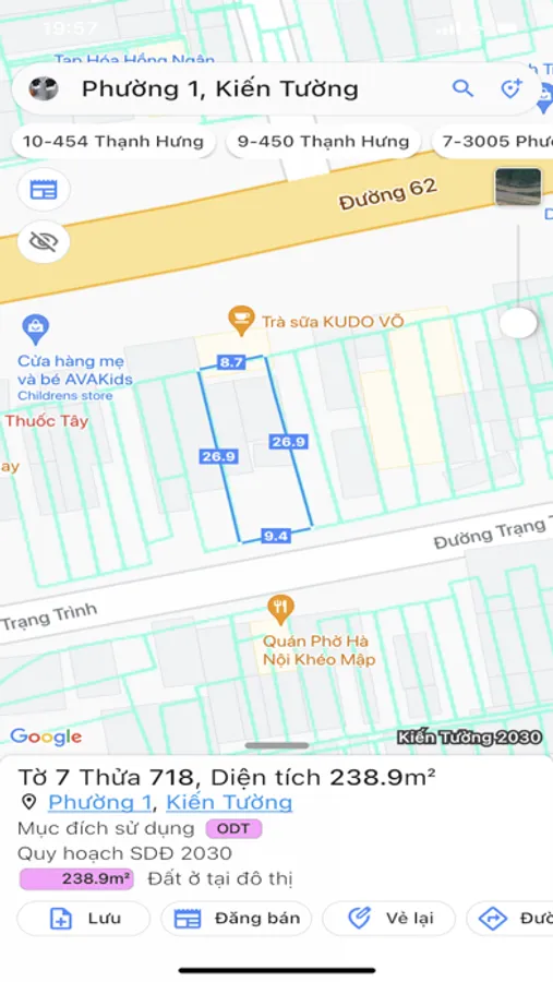 1. Định vị vị trí thửa đất hiện tại của người dùng có vào diện quy hoạch hay không.