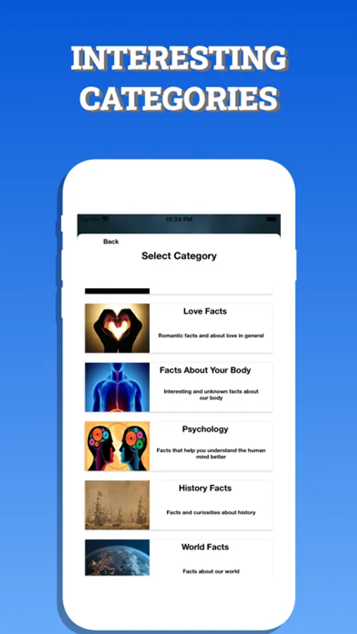 Do you wish to know more and more? With "Knowledge -Facts", you will learn interesting facts about humans, science, history and many more.