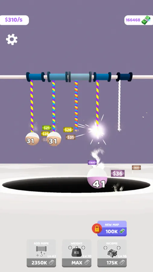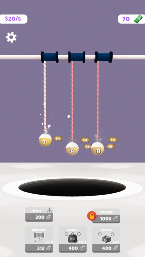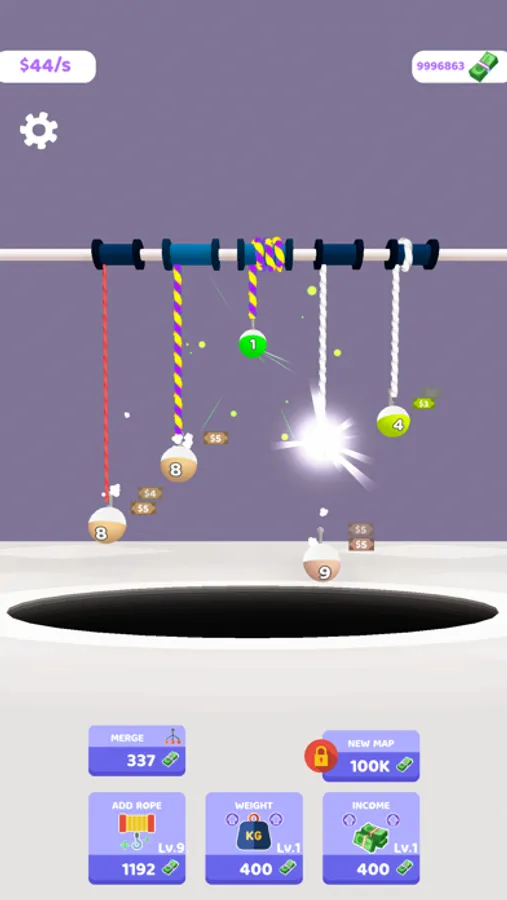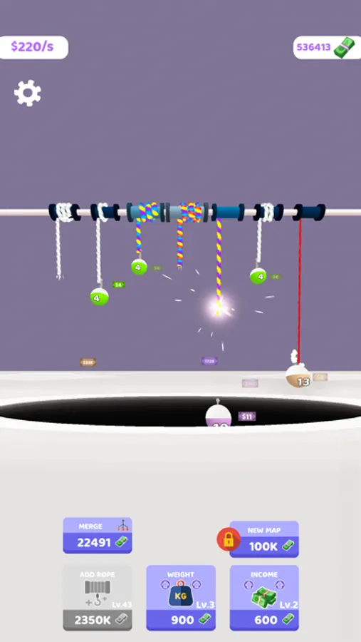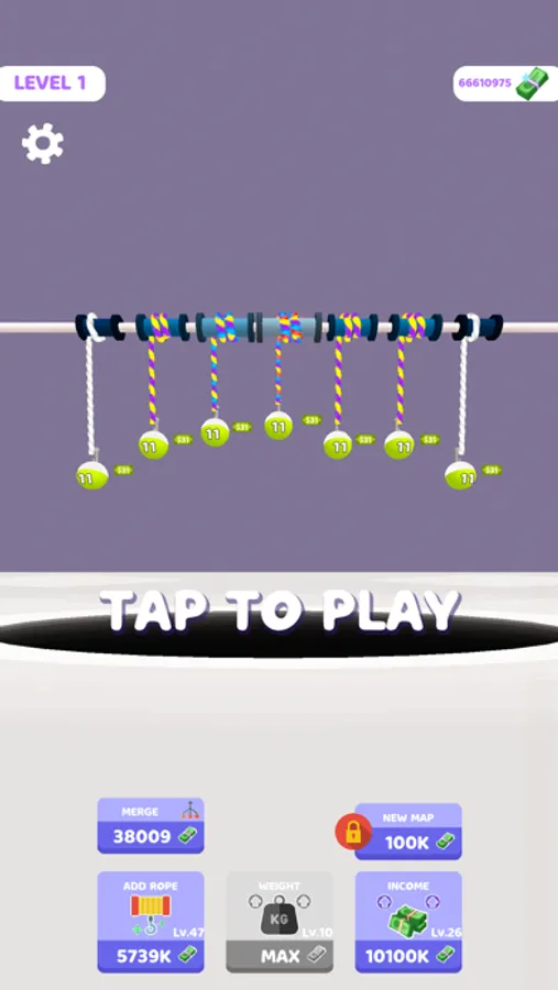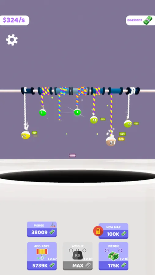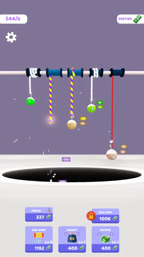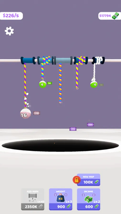 Balls are getting heavier! Break all the ropes to earn money! Do not forget to spend money to incrementals! Ropes are getting stronger and stronger! Tap tap to break them faster!