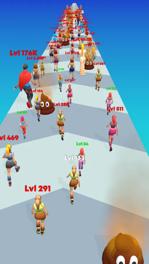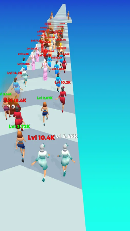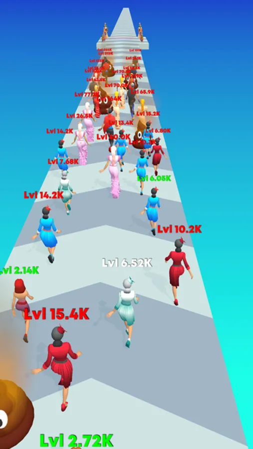 Navigate by swiping left and right on the screen. Encounter other models with your level or less and combine with them to increase your level.