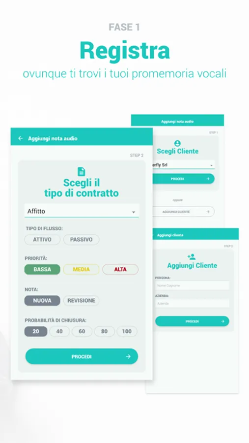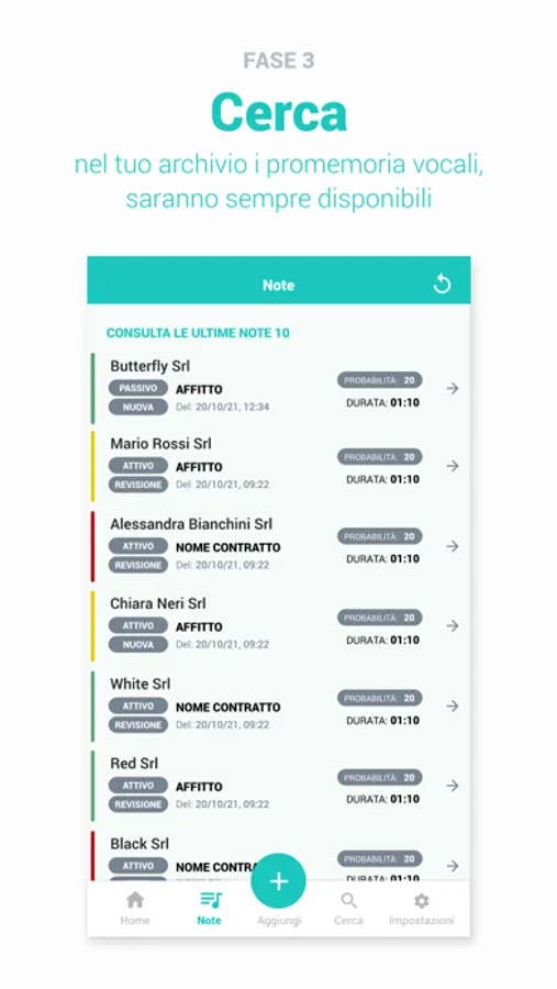 Potrai indicare il tipo di contratto che desideri stipulare e memorizzare i rinnovi. L'applicazione è la tua segretaria virtuale.