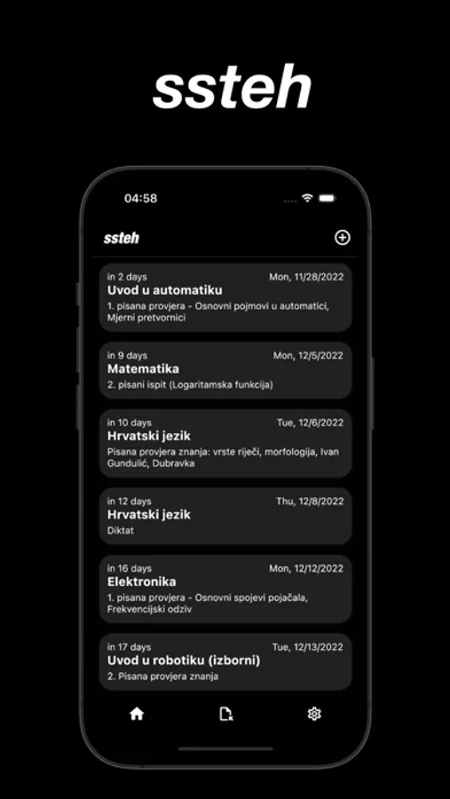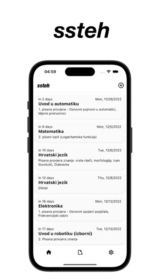 SSTEH is an app is for students of Tehnička Škola Zadar to use, upload, store and view documents. Sorted by class and subject. There is also integration with Ednevnik where it will show you the upcoming exams on the home page. (You have to login with your ednevnik account to see it).
