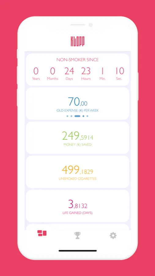 Track the benefits of quitting smoking on your health, your wallet, the environment and much more every day!