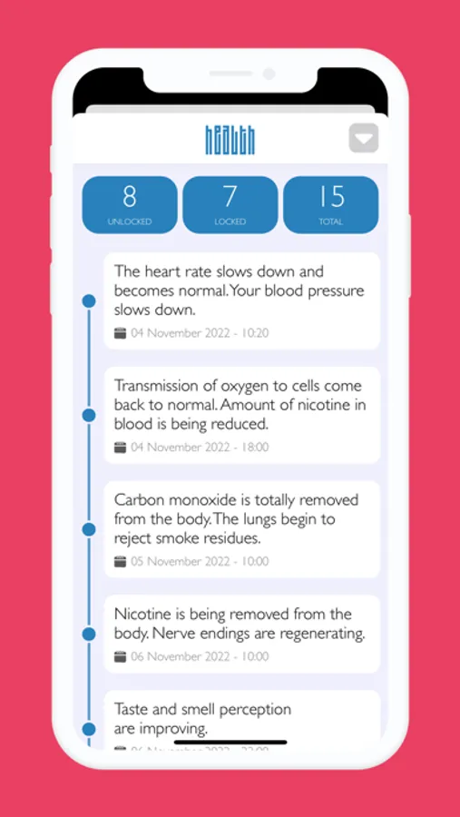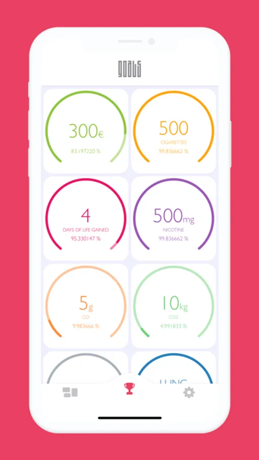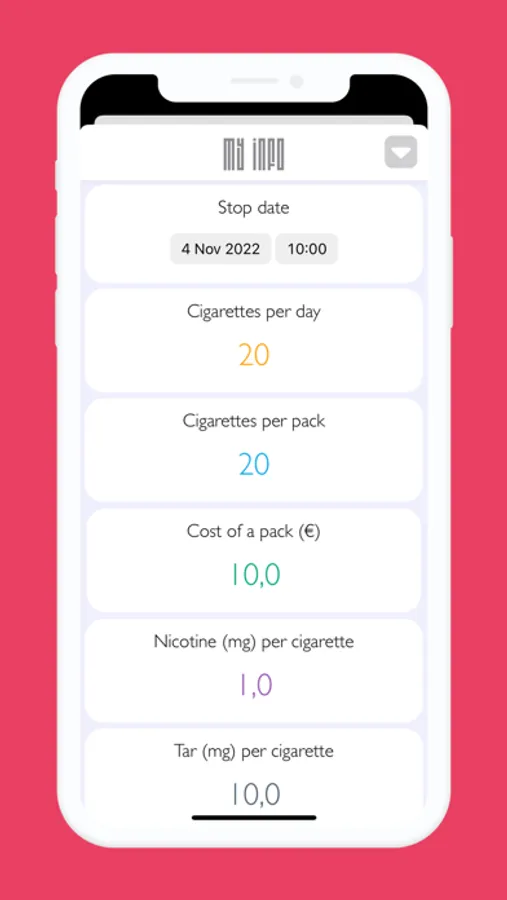 The application automatically calculates the money saved, the life expectancy gained, the number of cigarettes not smoked and the harmful and toxic substances not absorbed.