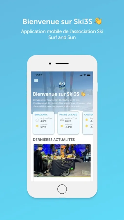 Bienvenue sur l’application mobile gratuite de l'association Ski Surf and Sun (Gironde), qui vous permettra de réserver et de consulter vos séjours et informations directement sur l’application.