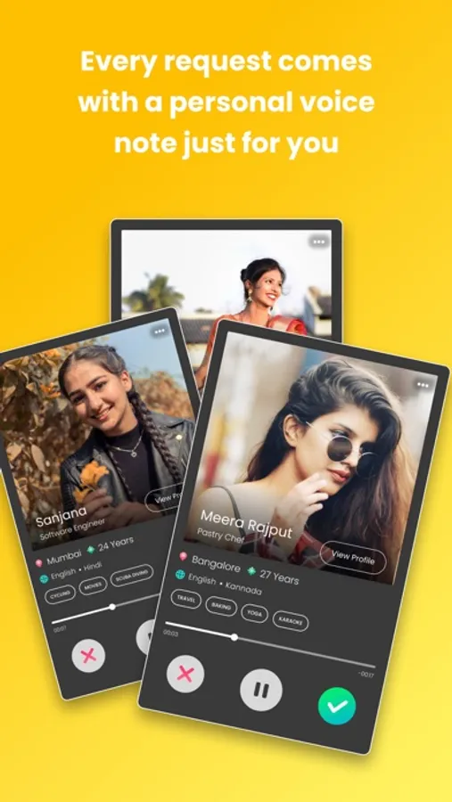 The app is completely free and you can send connection requests to anyone you like on the app. What's better is that you can attach a personal voice note for the receiver so that they get to know you better and the chances of your request being accepted is much higher. Once they accept your request, you can chat with that person and exchanges messages in the form of text, voice notes, images and videos.