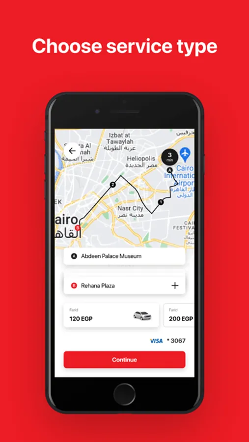 With our Farid Egypt TAXI, you just tap to request or book a car or van and get transport fast and easy within minutes. Whether you are going to the airport, hotel, bank, restaurant or a bar, there is a Farid Egypt TAXI for every occasion.