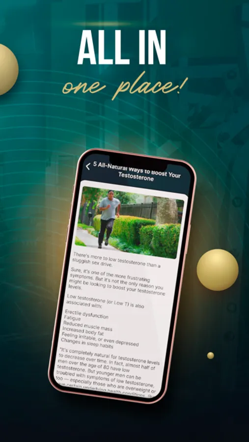 Our app is designed to help men to control and increase testosterone levels. Don't wait! It can be too late tomorrow! Start your Testosterone Levels Boost right now!