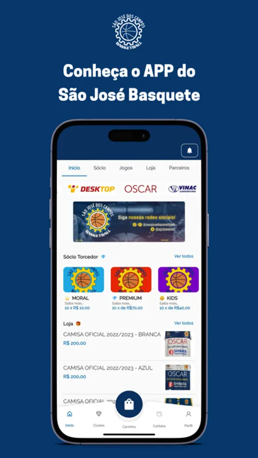 No APP do São José Basketball, você acompanha as notícias do clube, garante produtos oficiais e ingressos para os jogos, além de se tornar sócio torcedor obtendo acesso a rede de benefícios e promoções exclusivas.