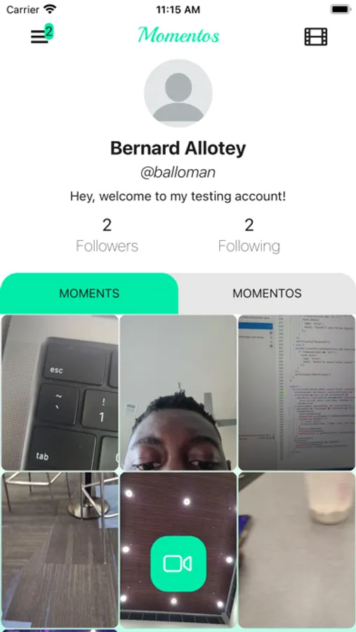 Record 2.5 second moments and edit them together to create a Momento. Share your Momento with friends & family on the platform and interact with their Momentos through likes and comments.
