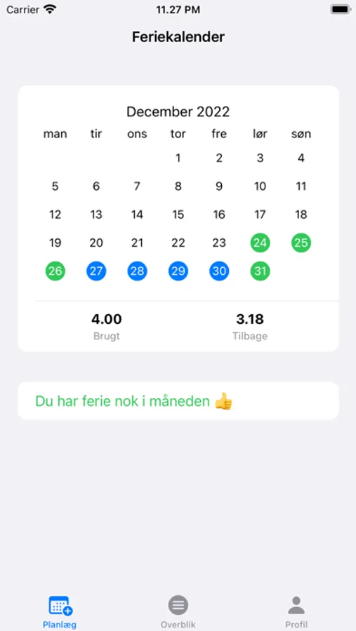 - Blive advaret hvis du bruger flere feriedage end du har optjent.