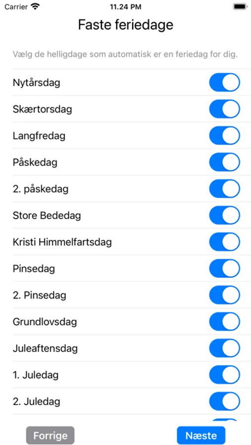 - Opsætte faste feriedage som påske, jul, nytår osv.