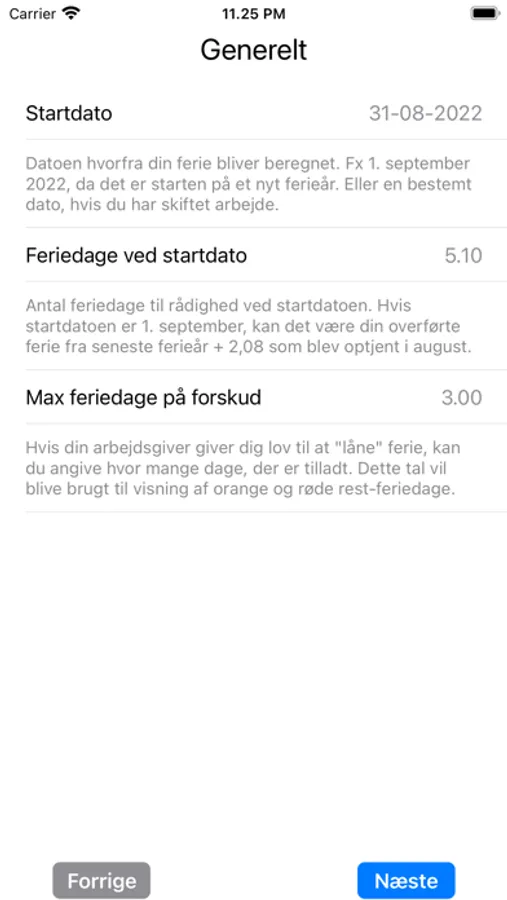 - Opsætte en startdato incl. antal feriedage.