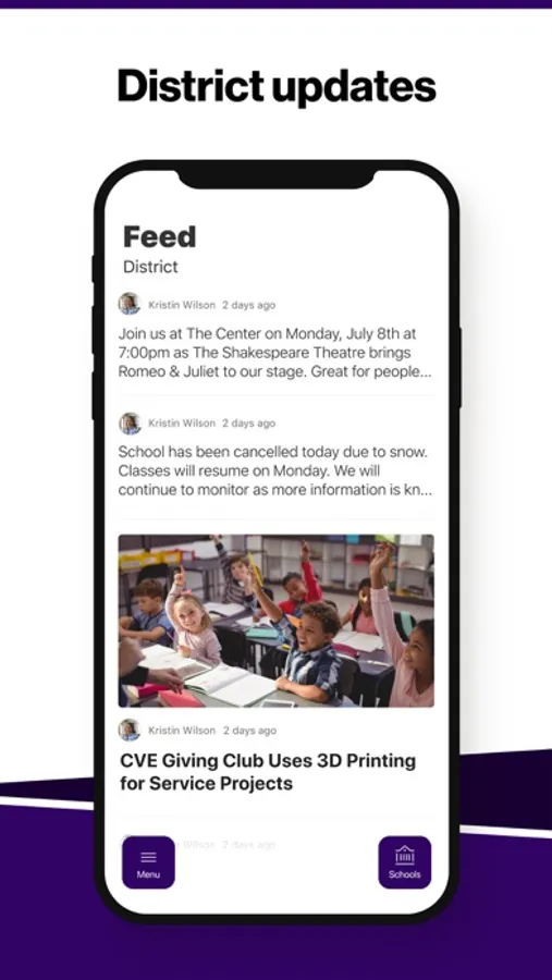 In the Live Feed is where you'll find updates from the administration about what's going on in the district right now. Whether that's celebrating a student's success, or reminding you about an upcoming deadline.