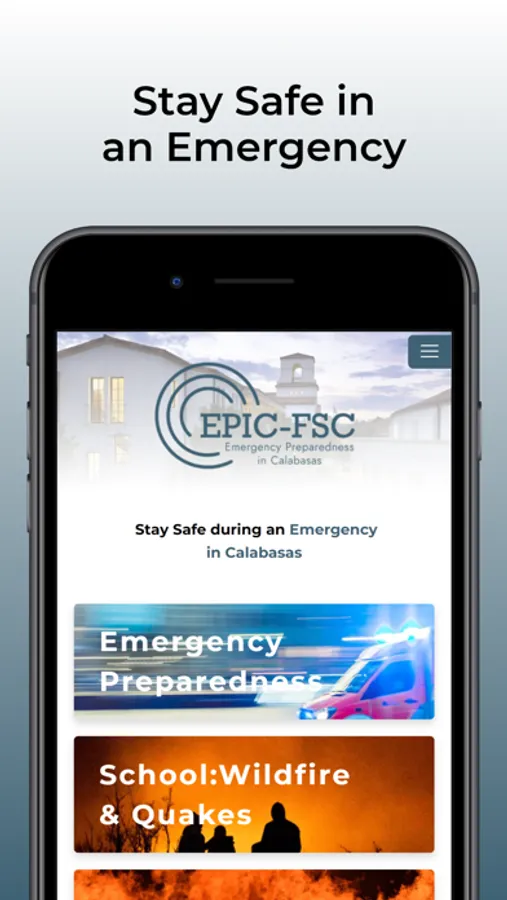 Emergency Preparedness In Calabasas (EPIC-FSC) is a fire safe council created to assist Calabasas, CA residents in the preparation for natural disasters. EPIC assists residents by providing guidance before an emergency event, during the event, and subsequently through recovery. This APP is designed to work even when cell coverage is down or restricted.