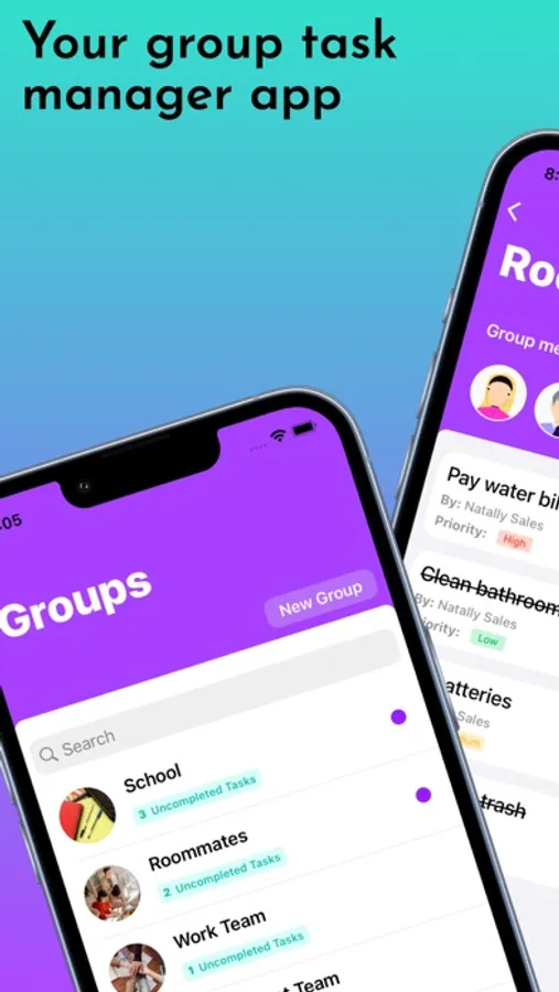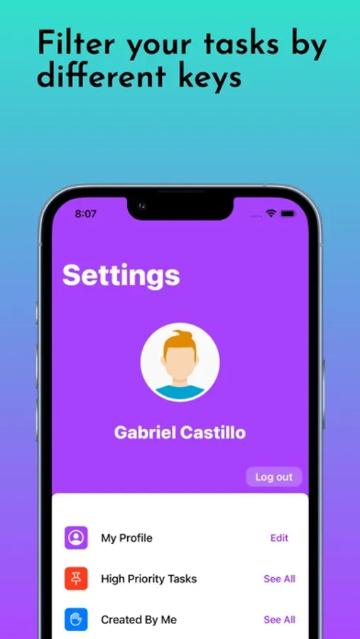 The Group Task Manager app allows users to create groups with friends and share tasks that can be completed by all group participants, the app also has a private section in which the user can create personal categories and tasks to organize his/her day-to-day life. In the settings tab the user can manage the profile settings and filter all active tasks by the given filtering options.