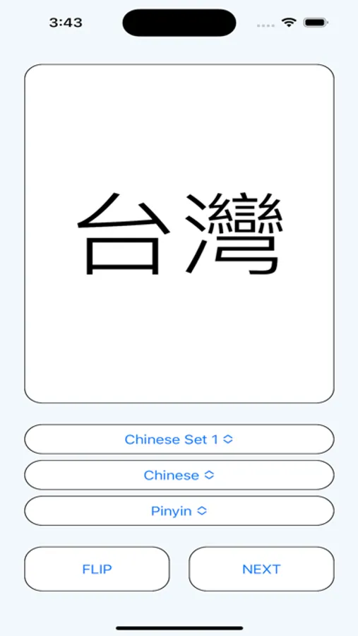 Git Gud Chinese is a simple flash-card style app for learning traditional Chinese characters. The characters that are pre-loaded into the app are grouped into sets of 100 characters, and currently there are 5 groups of characters (so ~500 total in the app). Since learning characters is a trinary experience (meaning there are three sides to every character: the character itself, the pinyin for it (the pronunciation), and the English translation) this app will allow you to select what is on the front side of the card (what you are shown), and what is on the flip side of the card (what you need to guess). So for example, if you wanted to focus on learning the pronunciation of the characters, you would se the app to show you the Chinese, and reveal the Pinyin.