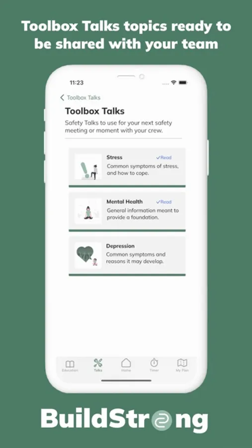 Read ready-to-share Toolbox Talks to your team. Expand your knowledge and add new techniques to your mental health toolbox.