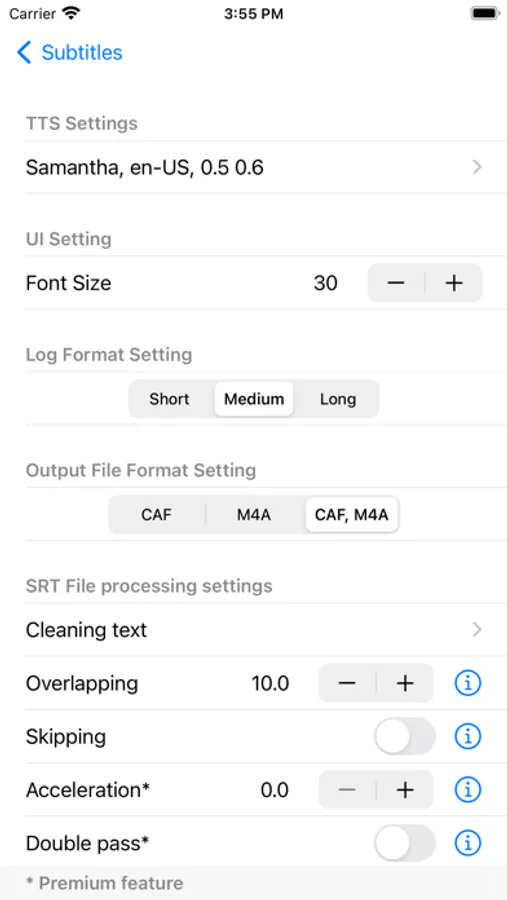 The application can automatically control the tempo of speech so as not to lose synchronization with the time stamp of subtitles.
