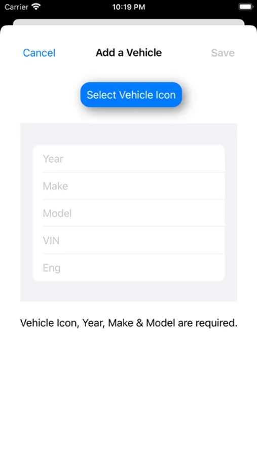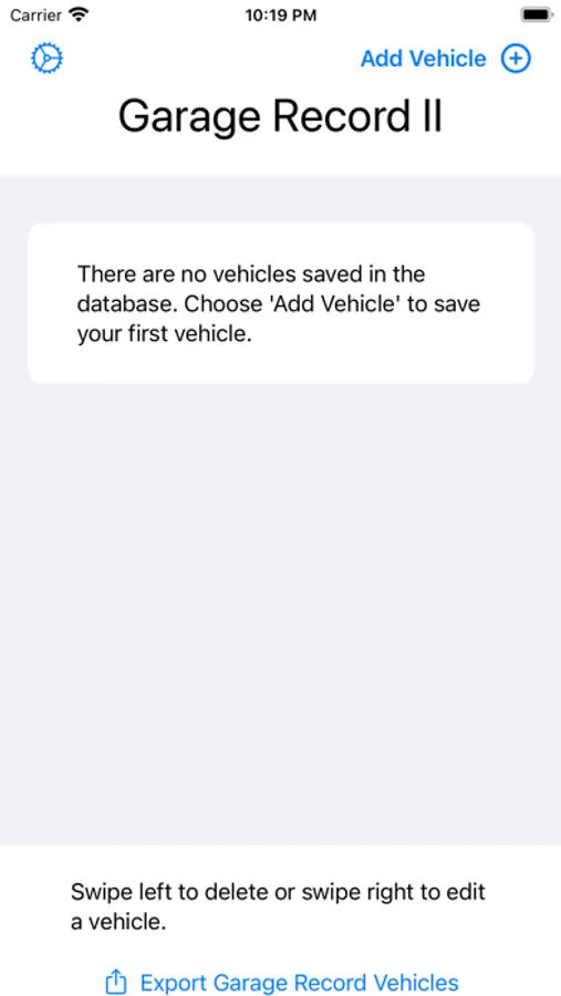 Create a vehicle record by tapping “Add Vehicle.” You can change the icon now by swiping right to edit a row. Swipe left to delete a vehicle and all its associated service records.