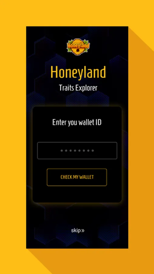 EXPLORE ANY WALLET: You can input your (any) Solana wallet address to explore all the Honeyland NFTs in that wallet. Assets will be sorted by collection and will allow you to see the total quantity and minimum value of the Honeyland assets in that wallet.