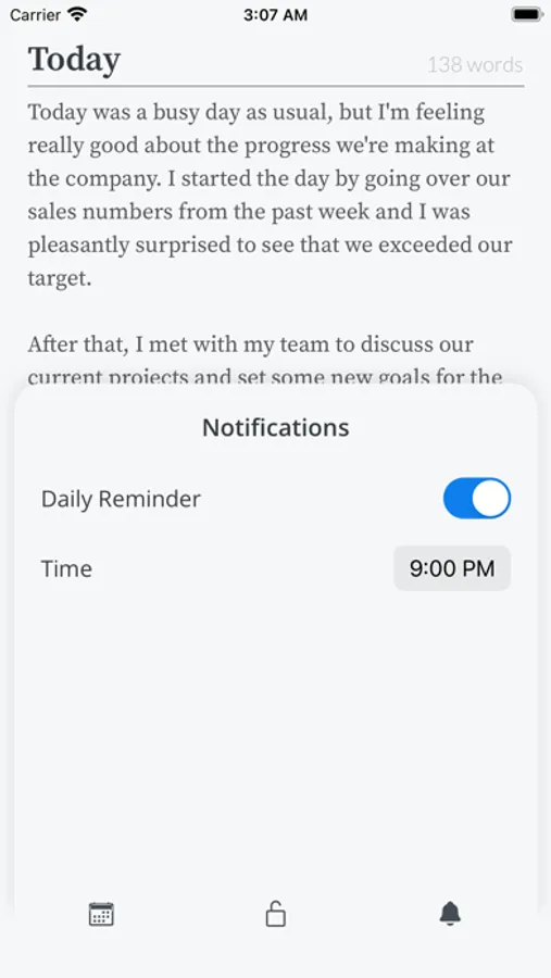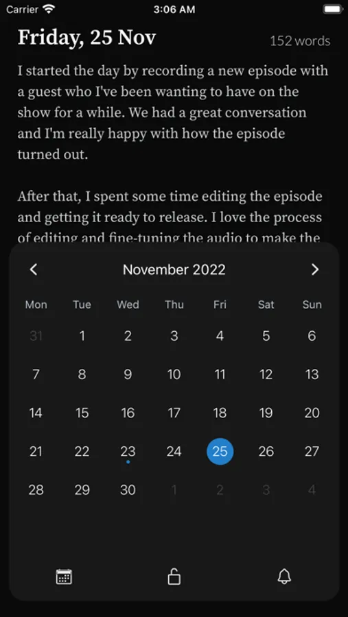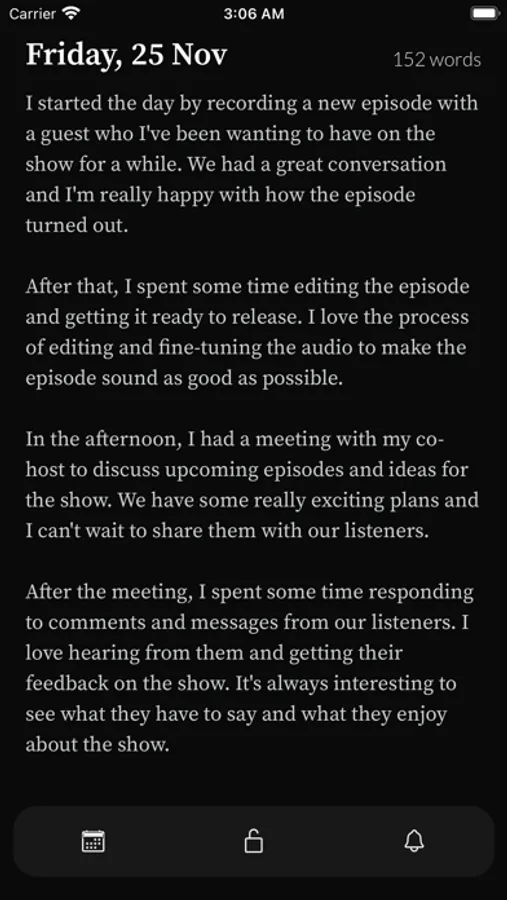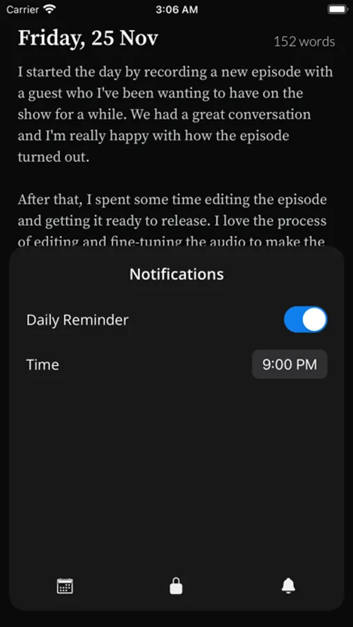 Journal is synced with iCloud so you can start writing on your iPhone during the day and finish on your iPad before sleep.