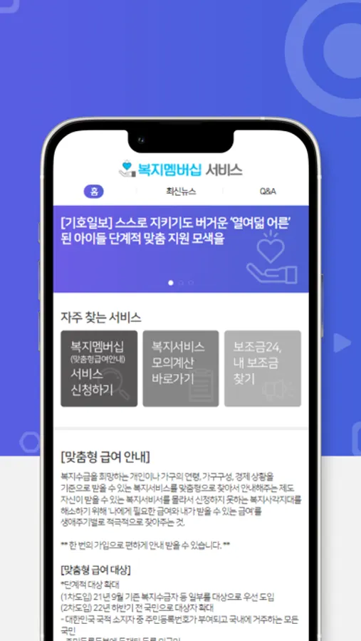 복지수급을 희망하는 맞춤형 복지 서비스를 소개해 드리며, 신청 절차, 자격, 유형 등을 상세히 알려드립니다.