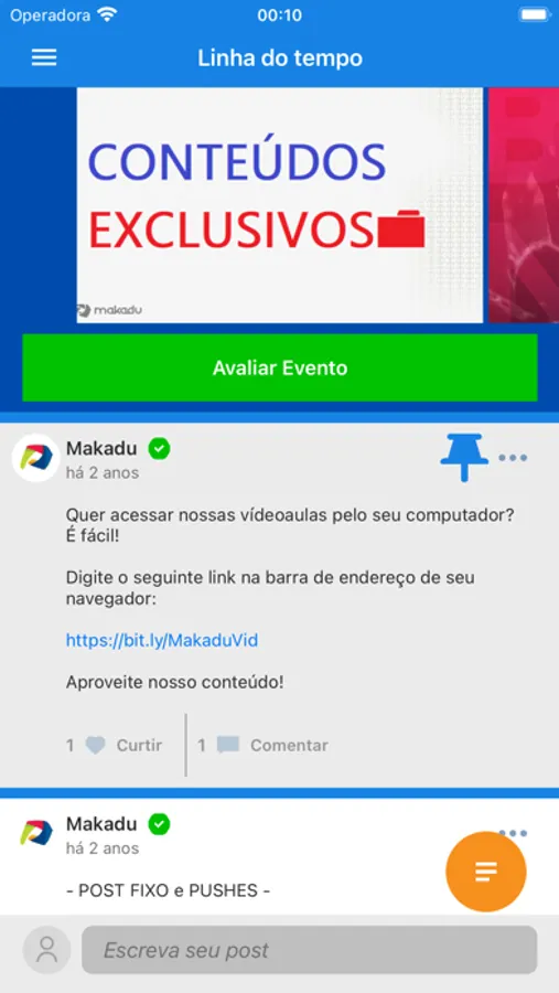 Ao final do evento, também vamos querer a sua opinião, que poderá ser dada respondendo a pesquisa através do próprio aplicativo.