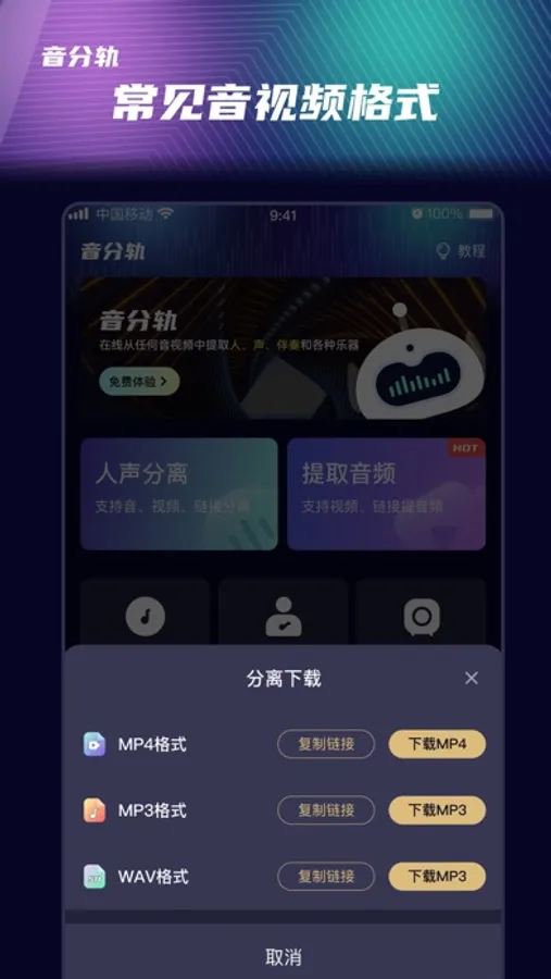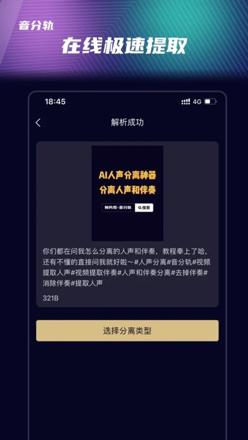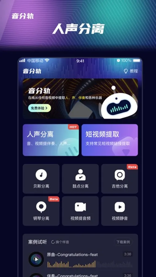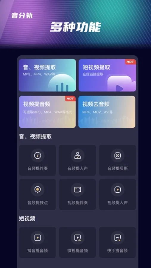 为用户提供音频提人声丨音频提伴奏丨音频提乐器丨视频提人声丨视频提伴奏丨视频提乐器丨人声与伴奏剥离丨视频转音频等服务