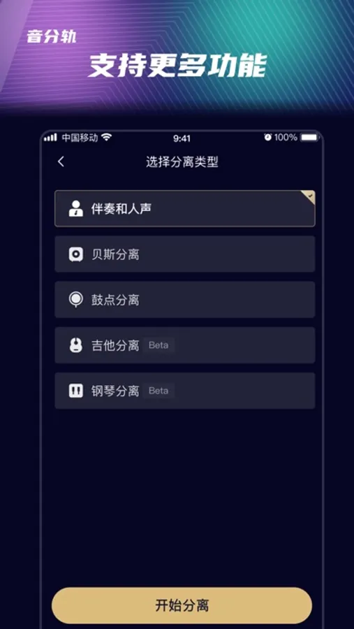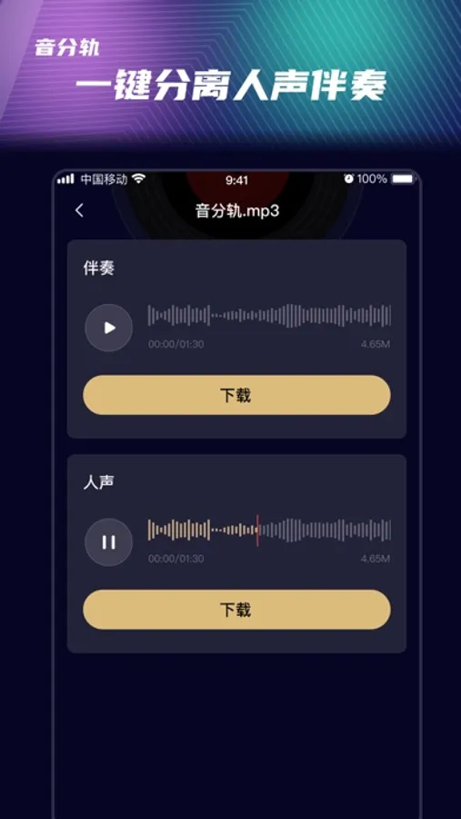音分轨-是制片帮旗下研发的产品,基于制片帮-悦音ANN-Rocknet人工智能引擎,提供快速、简单、高质量的音视频分轨软件服务,音分轨5.0卷积神经网络算法,让音质更加饱满、均衡,强劲的云端服务,让声音制作人、音乐家、DJ、音视频创作人以及其他音乐专业人士、创作人更加便捷、高效的进行创作。