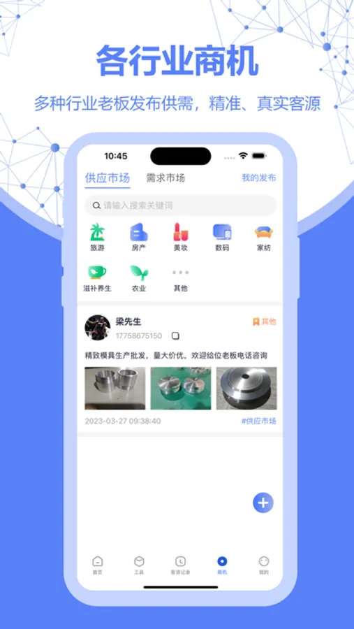 “客源查”APP是一款功能齐全的找客源找客户功能,主要功能有:地图客源、全国工商企业客源、短视频客源、短信群发等功能。让您获客更简单、快捷!