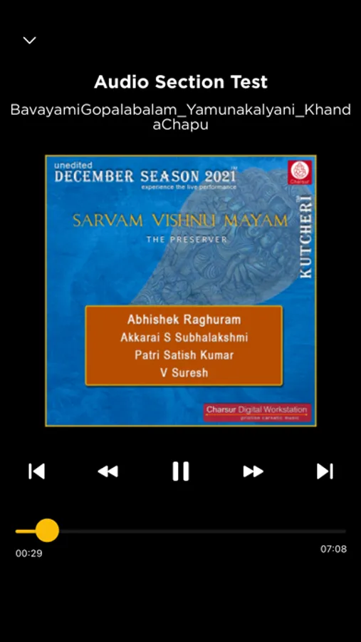 CHARSUR is a Carnatic Music label / Foundation - a Nonprofit Organisation formed primarily to promote, preserve and support the art and the artistes who have made enormous contributions in the field of CARNATIC MUSIC. This music system is based on Indian values and the themes often are spiritual and philosophical in content. The new system is an outcome in appreciation of the efforts that has gone into maintaining and sustaining this ancient art form. This is a unique opportunity to preserve the ancient Indian art and culture.