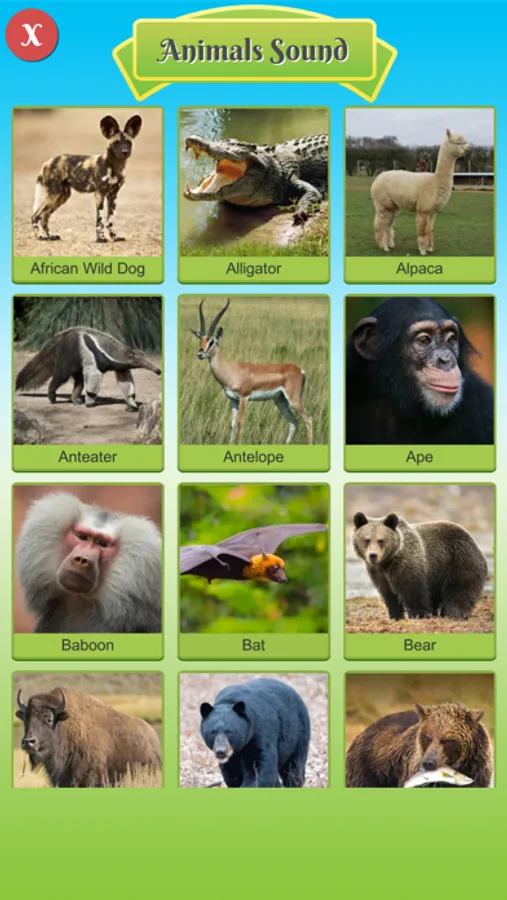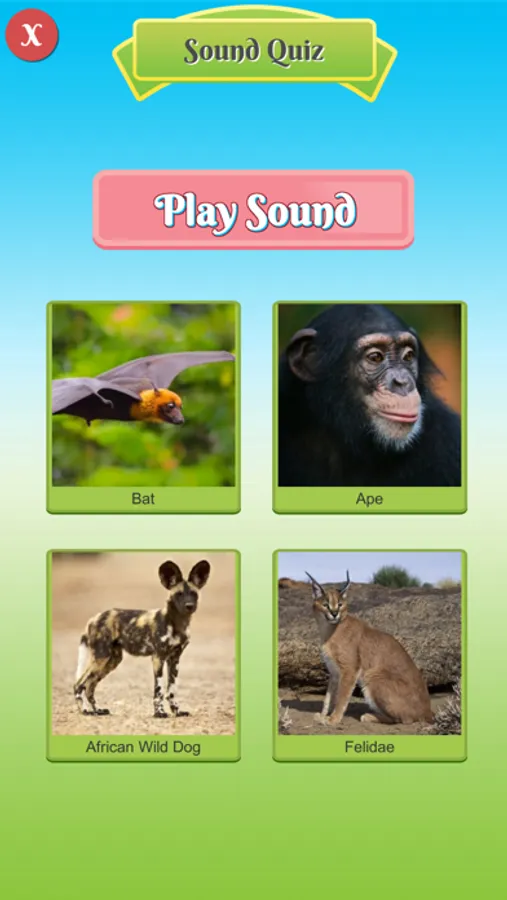 There is a quiz option where they can listen the animal sound and choose the correct picture of animal.