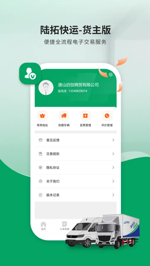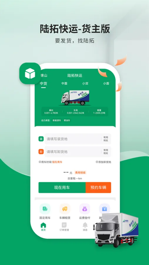 陆拓快运货主版的使用群体是“有市内配送需求的企业或者个人”,实现针对货主在物流行业内需求的一站式解决方案。具体功能包含物流交易、定制用车、车辆租赁、服务中心等功能。
